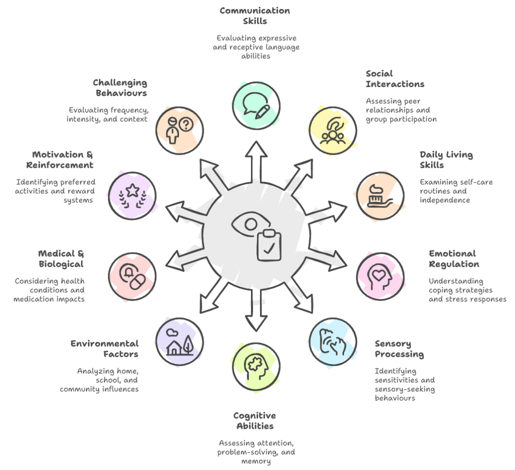 A Functional Behaviour Assessment (FBA) is a vital process used to understand the reasons behind challenging behaviours in individuals. Our approach goes beyond simply observing the behaviour itself, we focus on the full context, considering biological, social, emotional, and environmental factors that may influence an individual’s actions.